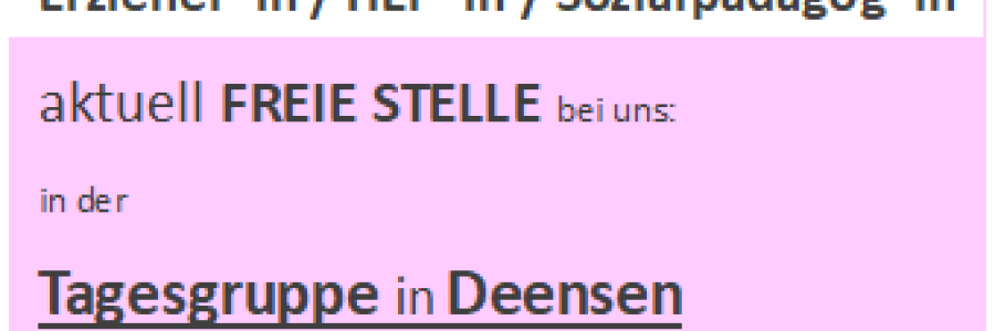 Die Tagesgruppe in Deensen ist ein teilstationäres Angebot der Kinder- und Jugendhilfe nach §§ 27, 32 und 35a SGB VIII. An unseren Standorten Holzminden, Deensen und Bodenwerder begleiten wir Kinder im Alter von 6 bis 13 Jahren nach der Schule bis 17:00 Uh...